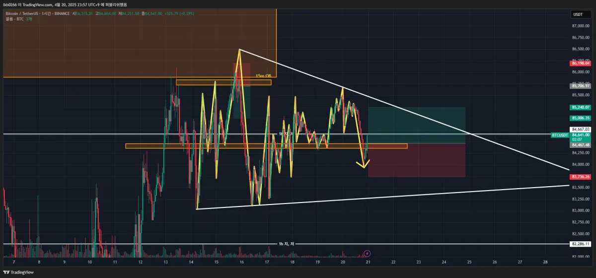 1차: 85,200 (고점이 낮아지고 있기에 고점 밑부근