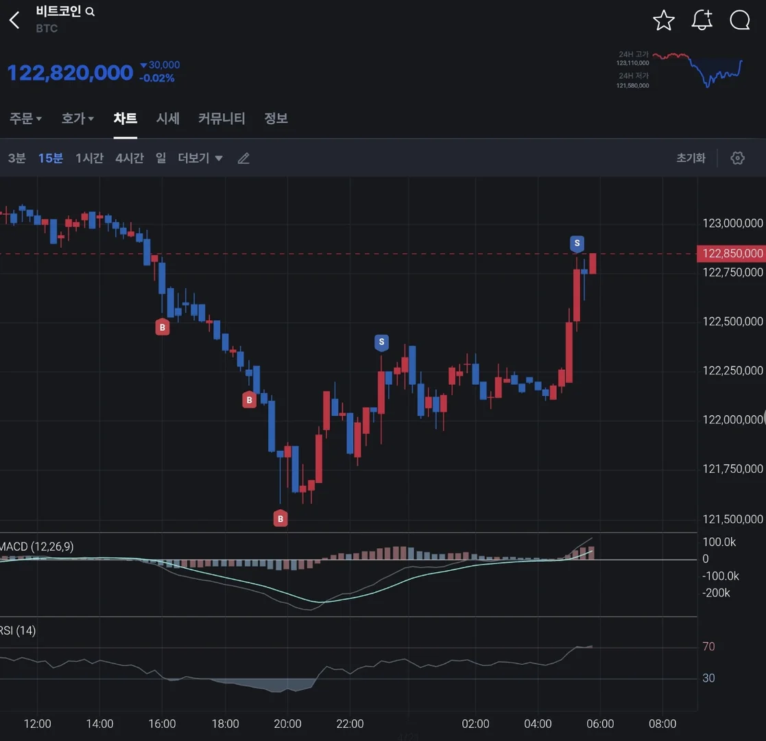 두 번째 매도는 RSI 70 이상이 되어 매도해 보았고