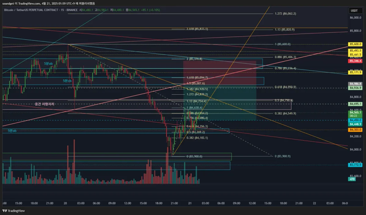 진입:84986.8/스탑:85373.2/익절:84448.9/손익비 1:1.39