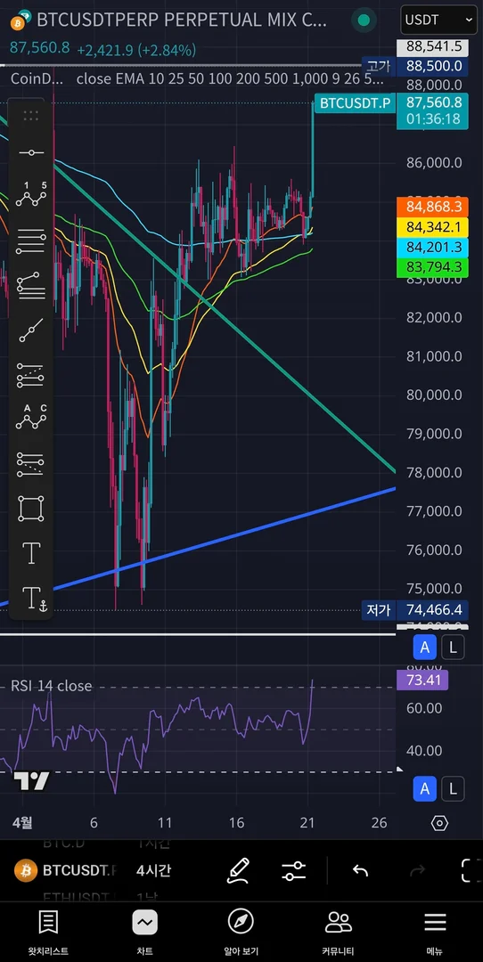 BTCUSDT차트의 4시간봉 기준