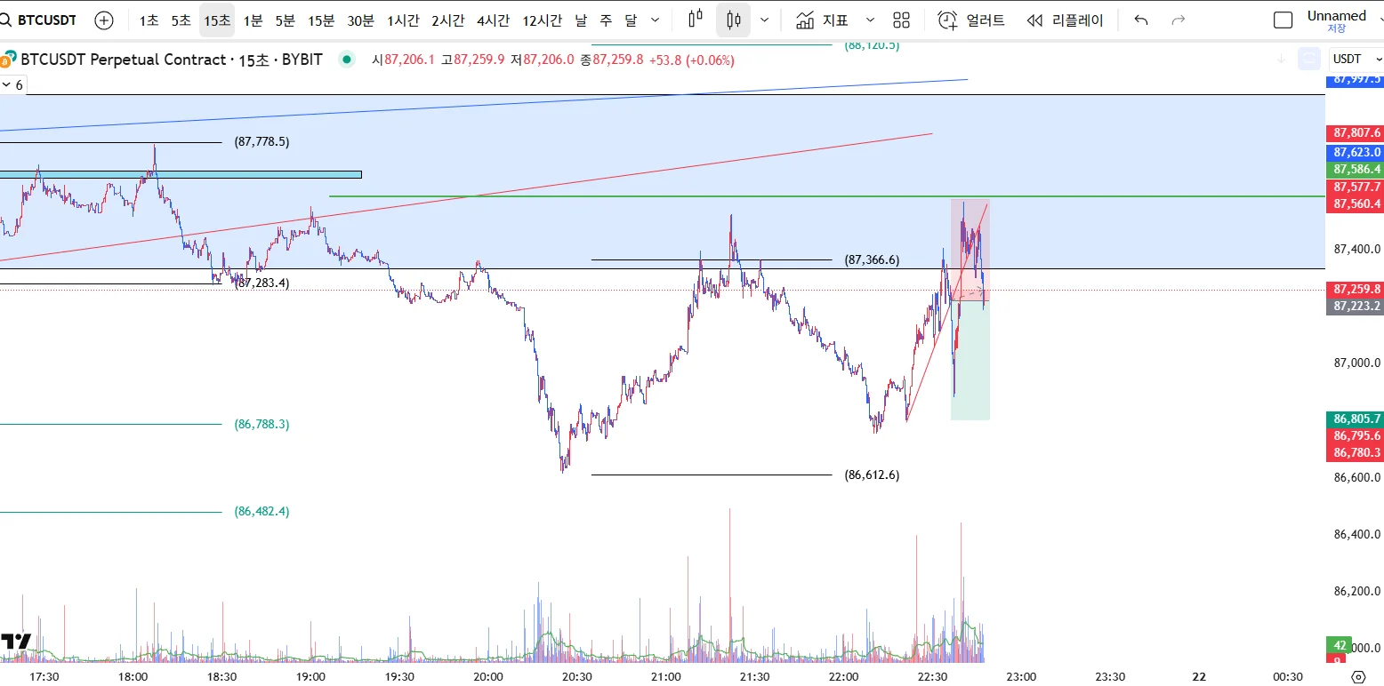 단기 상승추세선 이탈 및 오더블럭 내 저항 예상 및 전전 고점 돌파시 손절로 숏 포지션 진입입니다.