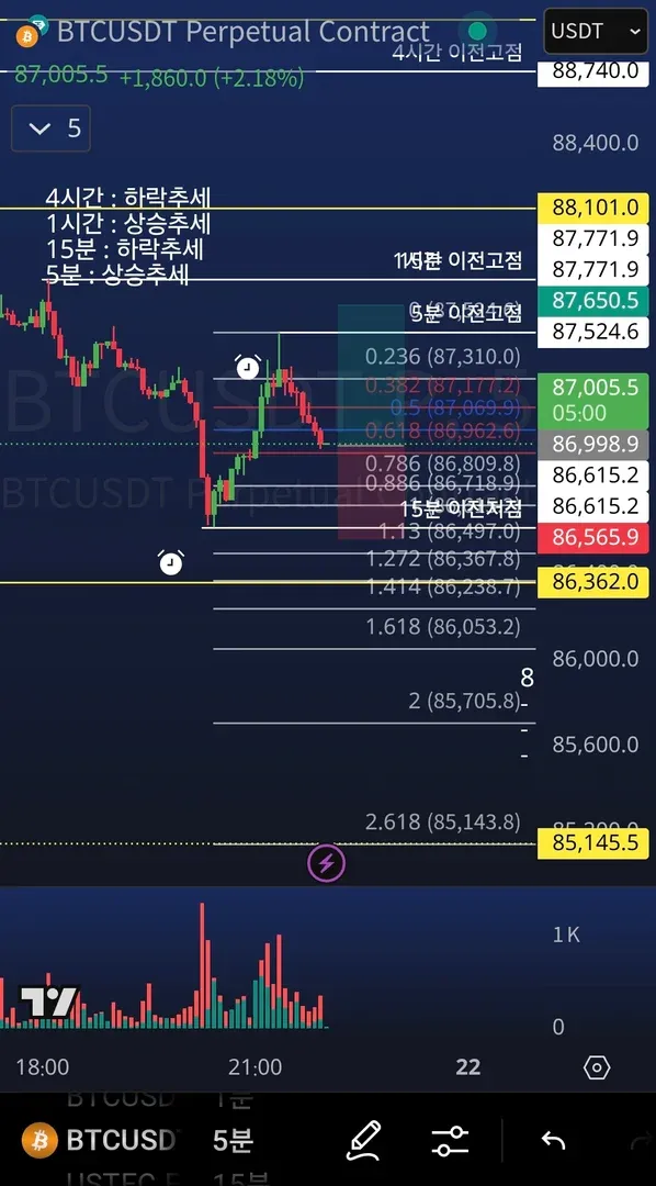 2) 피보나치 되돌림 0.618 / 0.5 사이