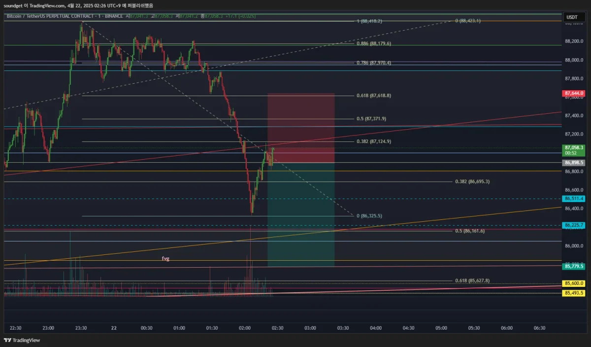 진입:86898.5/스탑:87644.0/익절:85779.5/손익비 1:1.5