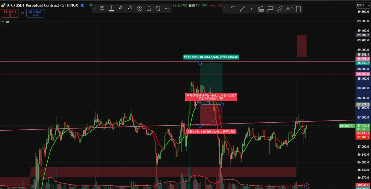 2)익절(TP) : 88,730 전고점,손익비(0.98)