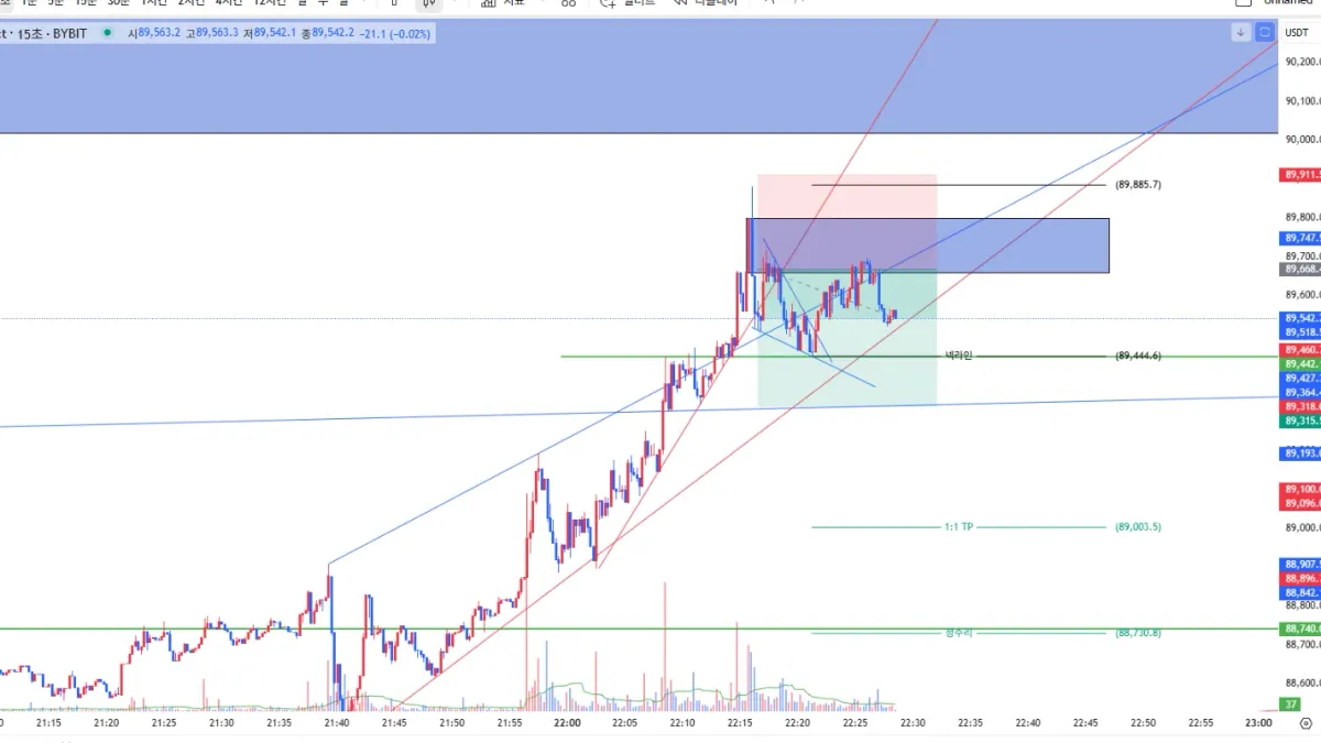 단기 더블탑이 나온다면 89까지 TP로 설정하고 끊어먹는 방향으로 진행하려는 포지션 입니다.