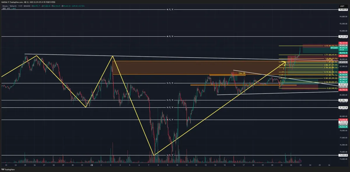 -90k까지 넘기면 4h 저항선까지 봐야할 듯