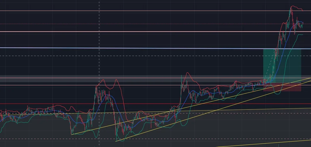 1봉, 4시간봉, 1시간봉 전체적으로 상승 추세였고, 계속 이전 고점 트라이 하면서 돌파 하고 있다고 판단.
