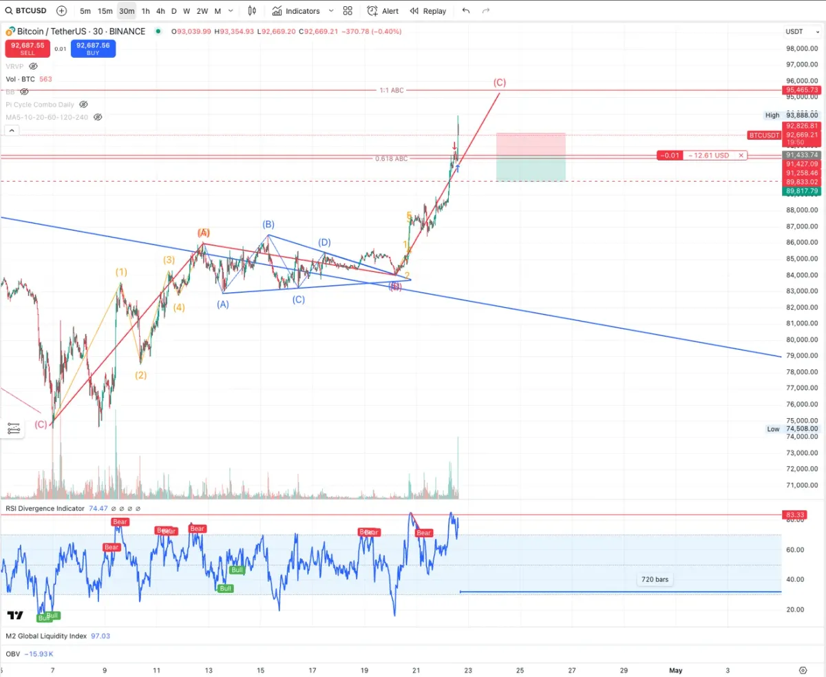 B파가 불규칙 삼각형으로 보고 분출이 1.618이상이란 것을 예측해서 2정도 되는 구간에 들어갔음
