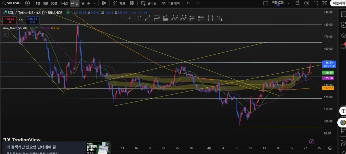 저점 올려줌으로써, 2차 저항선인 149USD 까지 갈것이라 판단 한것이 적중 하였습니다.