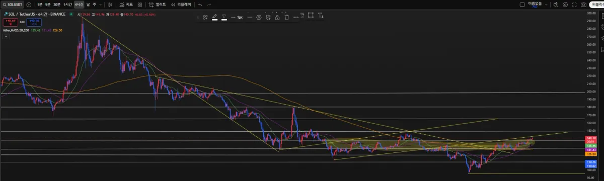 고점이 낮아지고 저점 또한 낮아진 상태이지만 장기 하락 추세선 상방 돌파 하여