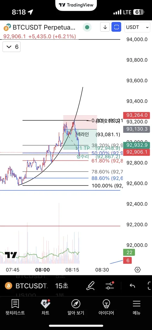 진입근거 : 단타 포지션 입니다 곡선추세 이탈 및 더블탑 근거로 숏포지션 들어간 포지션입니다. 거래량 많이나온 직후라 급박하여 포종 후 매매일지 작성합니다