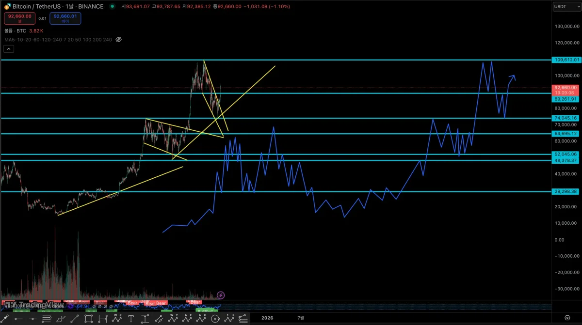 실제로 지금 글을 쓰는 시점 기준, 92,000달러선을 하회하고 있네요.