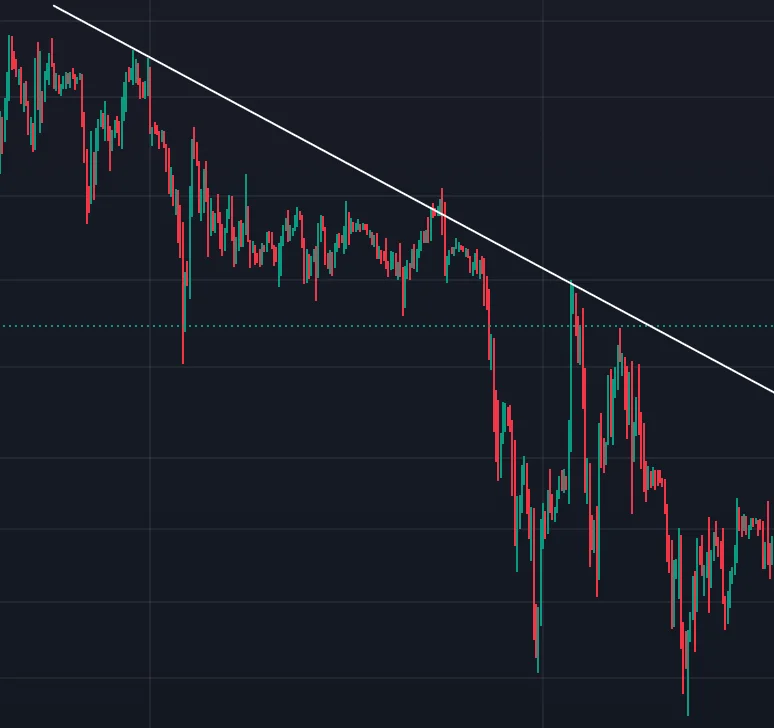 하단 지지를 받다가 추세선 리테스트까지 마치고 하방으로 추세 전환