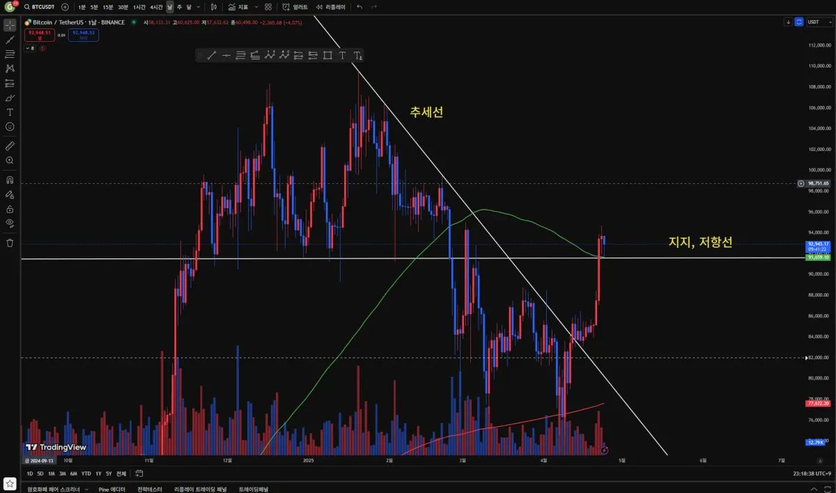[30일 챌린지 25기 1주차]지지 저항과 추세선 강의와 실습 강의를 듣고 연습해 봤습니다 - 7일 챌린지 커뮤니티