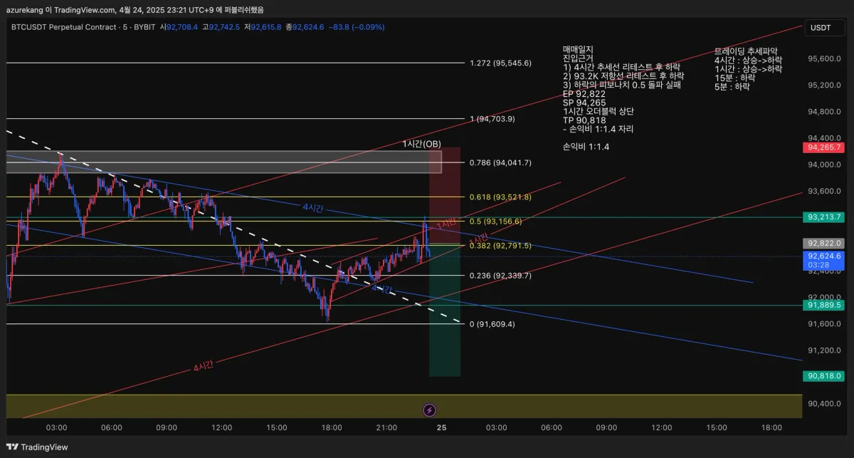 • 93.2k 저항선 리테스트 후 하락