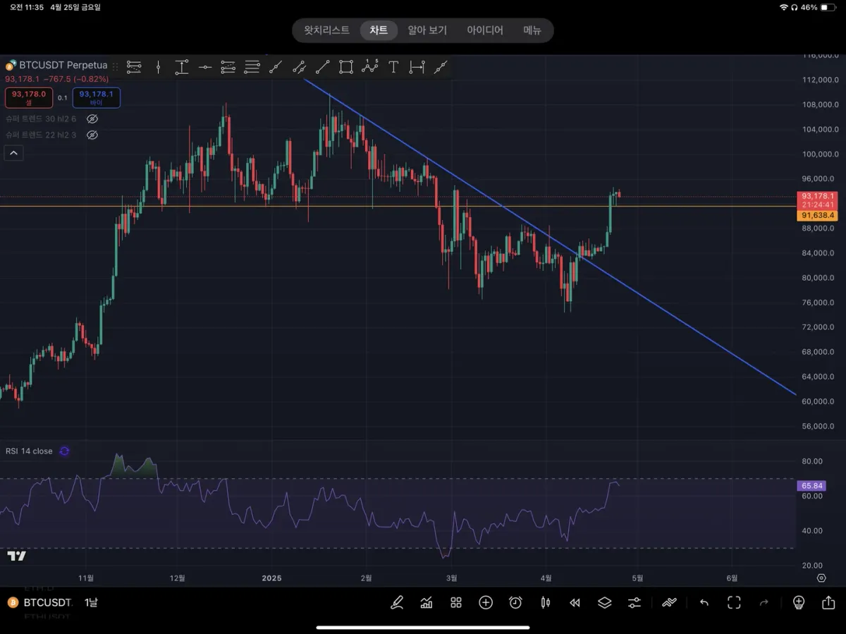 일봉상 저항선 돌파 + 추세선 돌파