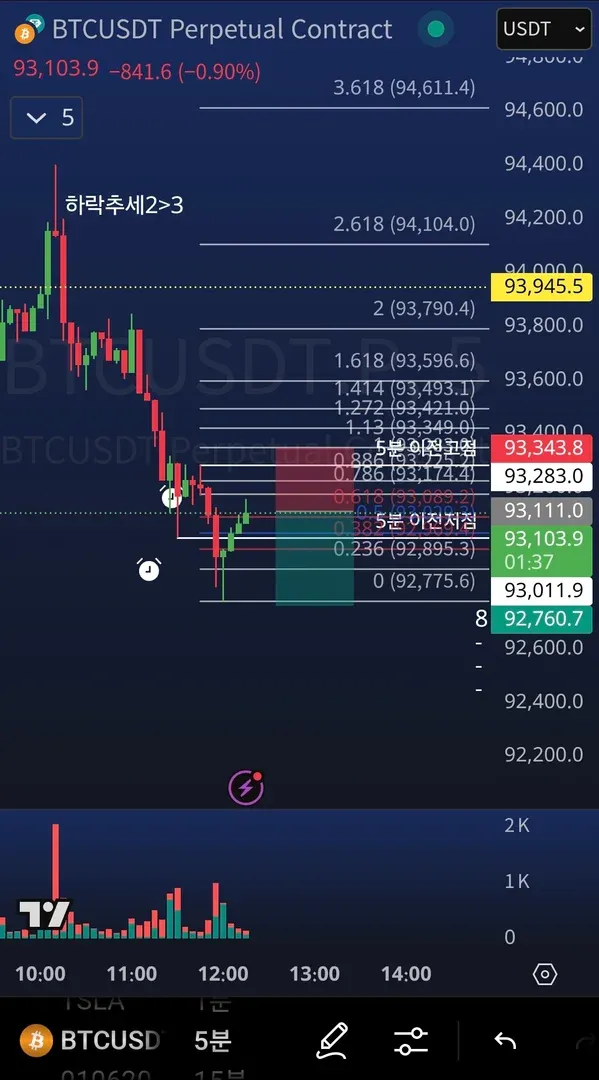 2) 피보나치 되돌림 0.618 부근