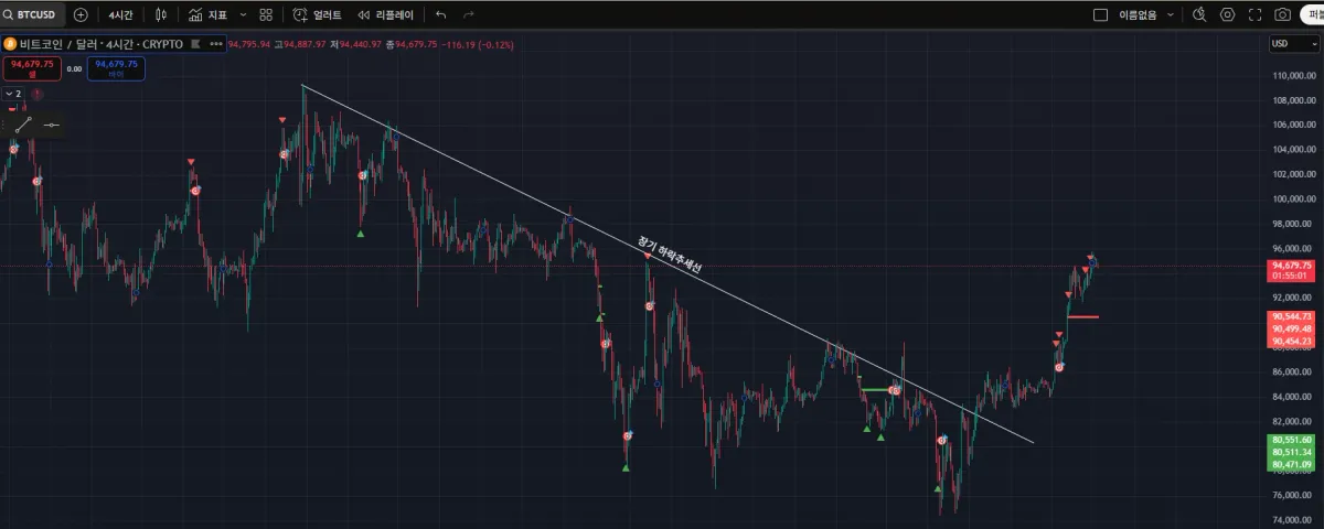 트럼프 취임(전고) 109K 기준과 82K 하추선 돌파 후 추세 변곡의 기준이 될 수 있을 것 같습니다
