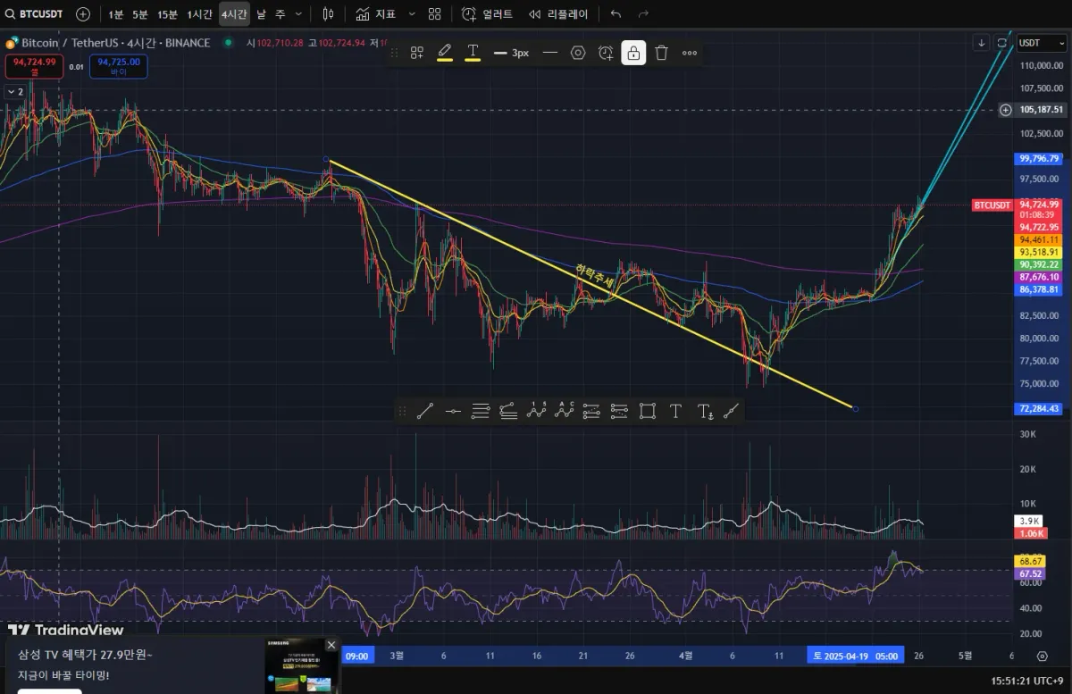 7일 챌린지30일챌린지 24기 2주차 트레이딩뷰에 RSI지표 추가미션 완성