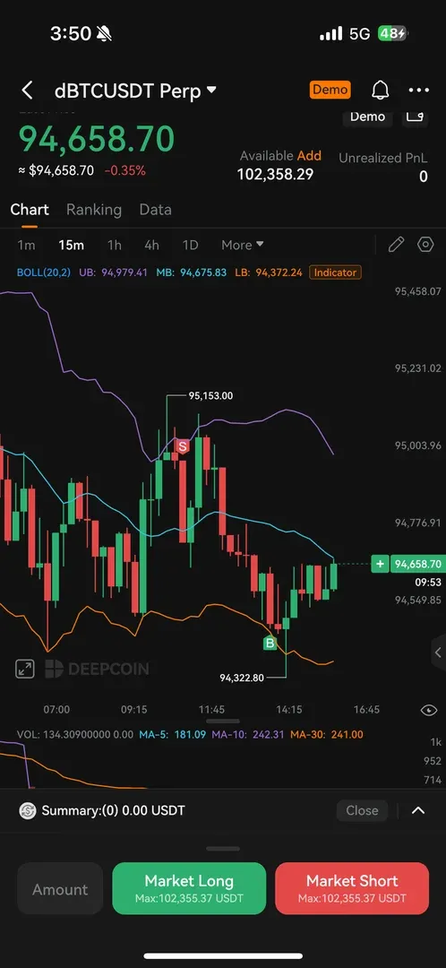 다음달부터 금액 넣고 시작하려합니다다 볼린저밴드 강의를 듣고 위 상단에 터치하고 내려오는걸 확인 후 짧게 들어갔습니다