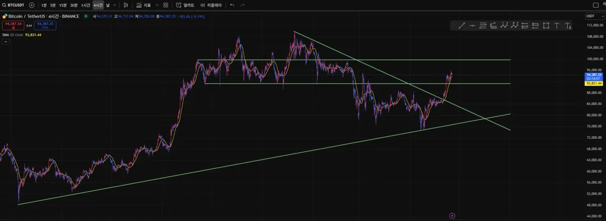 삼각수렴 돌파 이후 박스권을 형성하며 100k 돌파 테스트를 할 것으로 예상해봅니다