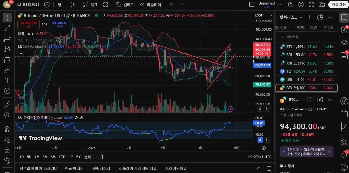 rsi , 볼린져밴드 , 거래량 추가했습니다.