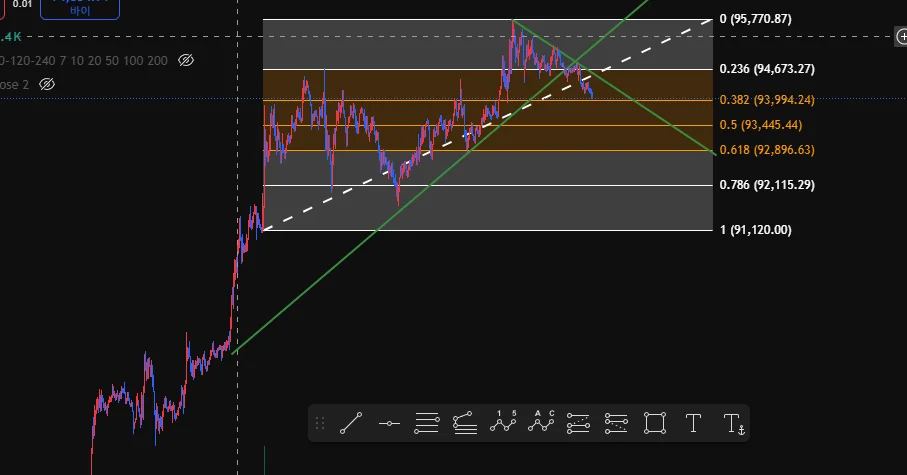 작도 잘 해주셨습니다!! 우선, 초록색으로 그어진 상승 추세선은 저점을 두 개 이상 연결해서 작도한 것이 맞는데, 현재는 그 추세선이 이탈된 상태입니다. 이럴 경우 단순히 이탈 여부만 보는 것이 아니라, 이탈 후 되돌림 구간에서 이전 지지선이 저항으로 바뀌는지를 확인해야 합니다. 그런 구간이 발생했다면 그 자리에 수평선을 하나 더 추가하고, 이 지점을 기준으로 추세 전환을 명확하게 구분하는 것이 좋습니다. 또한, 여러 시간대에서 확인해보는 습관을 들이시면 좋습니다. 1시간봉에서는 작아 보이는 파동도 4시간봉이나 1일봉에서는 큰 의미를 가질 수 있기 때문입니다. 상위봉에서 주요 고점과 저점을 먼저 확인하고, 그 구조 속에서 저점과 저점을 연결해 하락 추세선이나 하락쐐기형을 그려보는 것도 연습해보시길 추천드립니다. 만약 패턴이 수렴 형태로 보인다면, 삼각수렴인지 쐐기형인지 구분한 후 이탈 방향과 거래량을 함께 보면서 전략을 세우면 더 좋습니다. 전체적으로 방향은 잘 잡고 계십니다. 추세선과 수평선은 단기 반등과 반락 포인트를 구체적으로 잡아낼 수 있는 도구이므로, 자주 차트에 직접 그려보면서 눈에 익히는 것이 중요합니다. 앞으로도 상위 시간봉부터 구조를 보고, 하위봉에서의 흐름과 거래량을 비교하면서 분석하는 습관을 계속 유지해보시길 바랍니다!