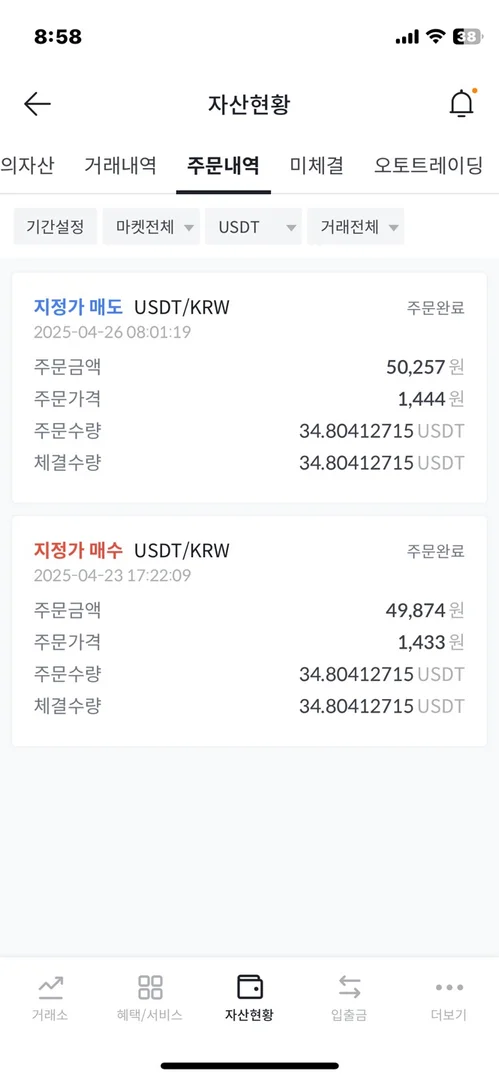 이평선이 상승을 그렸을 때(7일) 저항은 1444원으로 두고 매도할 계획이었습니다.