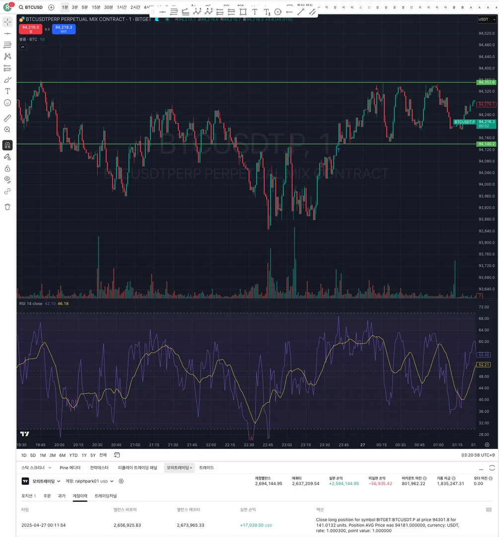 트레이딩뷰 모의트레이딩 이용했어요 (원래 하던거라..이게 편해서..)