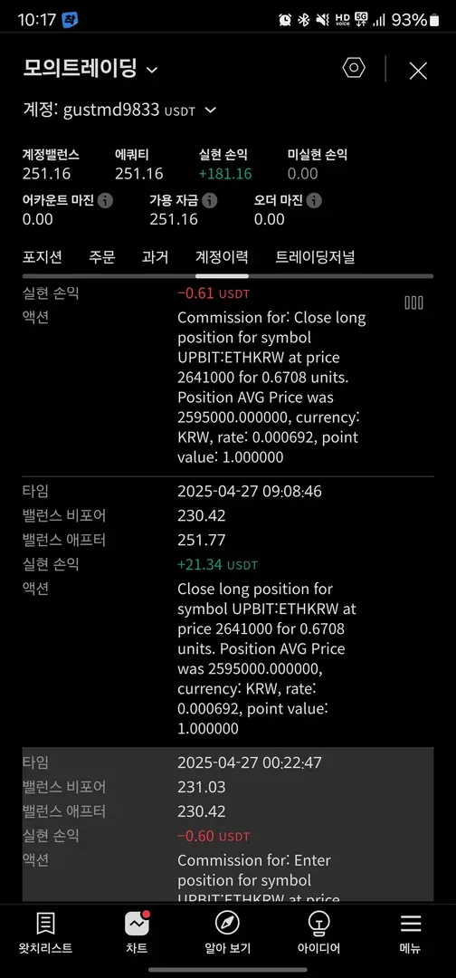 본 매매는 트레이딩뷰의 모의트레이딩으로 진행되었습니다
