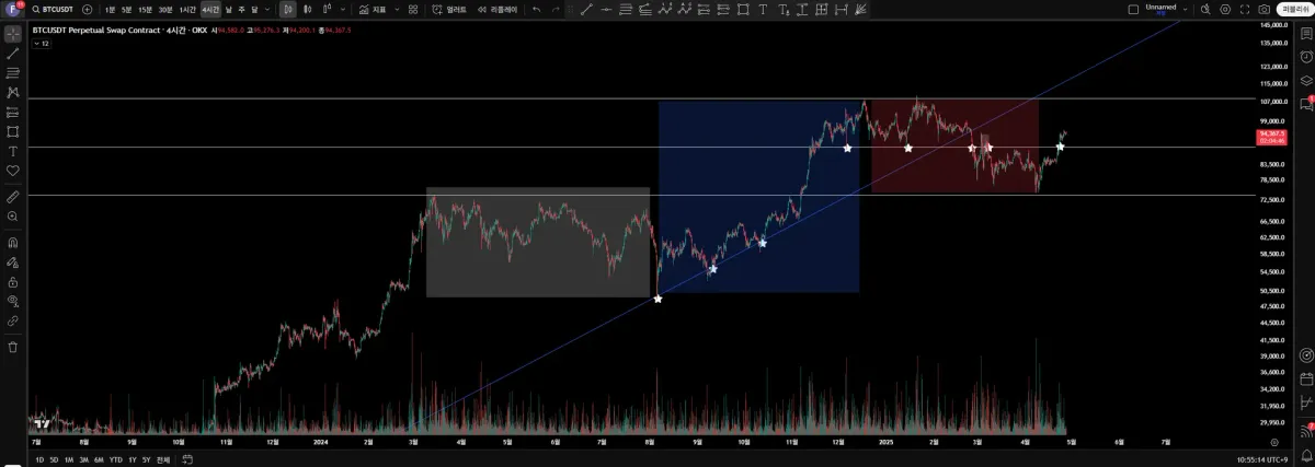-. '25년 3월 3일 ~ 3월 6일까지 해당 구간 저항 받았지만, 결국 리테스트 결과 저항선으로 변화(현재 저항선 돌파)