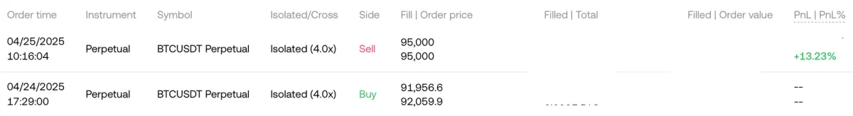 위 글에서 분석했던 대로 진행했고, 95,000달러에서 50% 익절된 상태입니다.