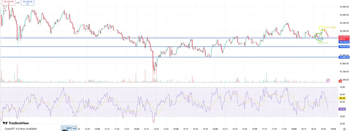 트레이딩뷰를 켜놓고 지지선을 그어 놓고 계속 보았습니다.