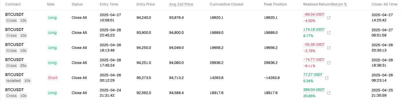 결과는 스탑 3번 터졌고(총 손실 : 218 USDT) 1번 익절 성공( 174 USDT) 했습니다.
