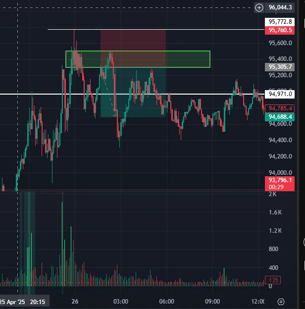 진입 : 95,273 / 타겟 : 94,700 / 스탑 95,770
