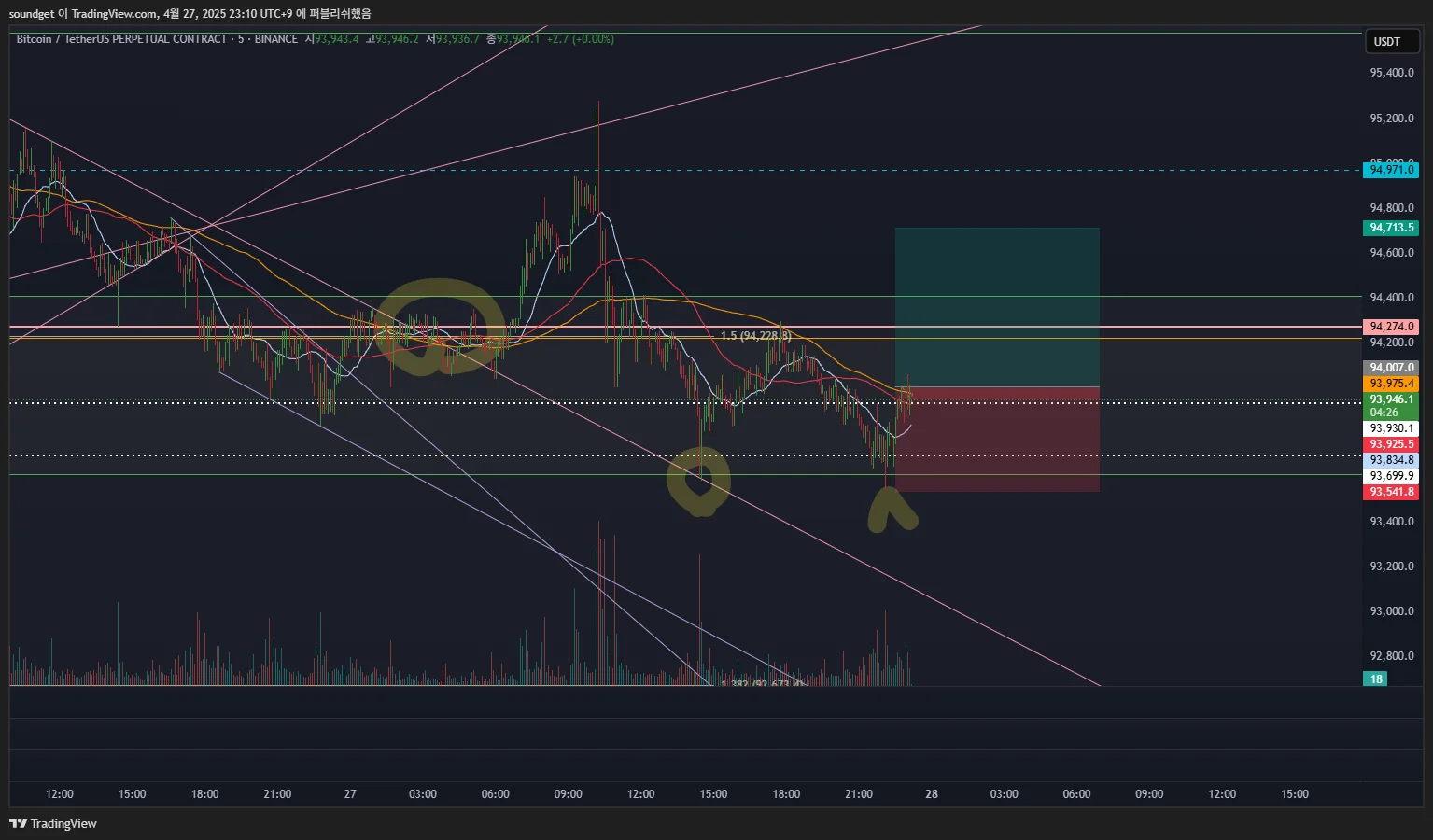 진입:94007.0/스탑:93541.8/익절:94713.5/손익비 1:1.52