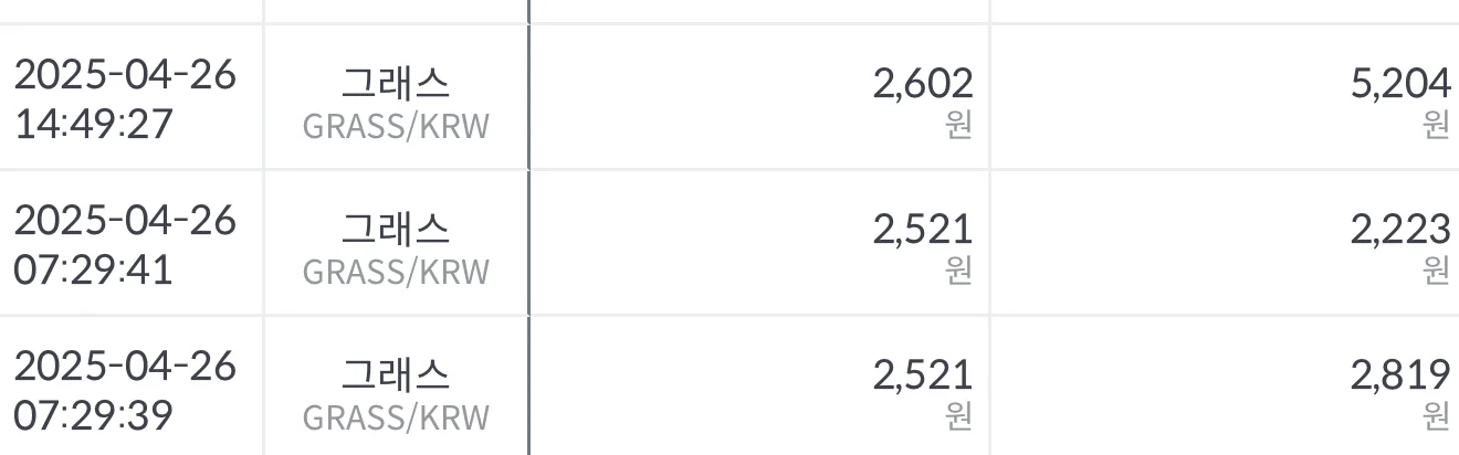 그래스 라는 코인이 빗썸에 새로 들어와서 소심하게 아주 작은 금액만 해보았고