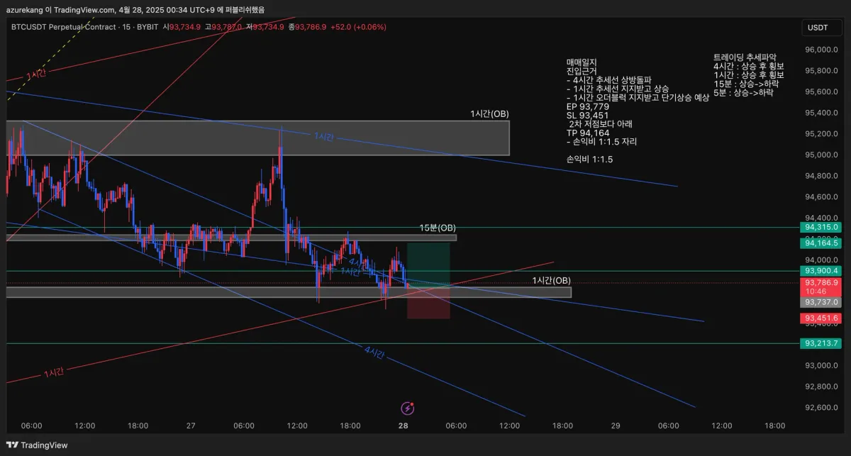 - 1시간 오더블럭 지지받고 단기상승 예상