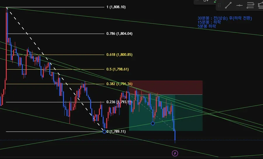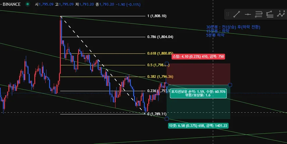 하락 추세선 (1789.23)까지 익절 라인 잡고 손익비 1.6으로 진입 했습니다.