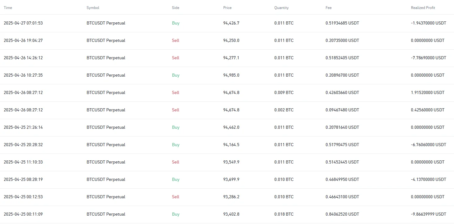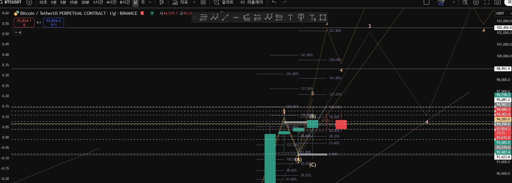 93500-96000구간이 상승을 위한 베이스 단계라고 생각하고 유투브에서 본 박스권 매매를 시도했다.