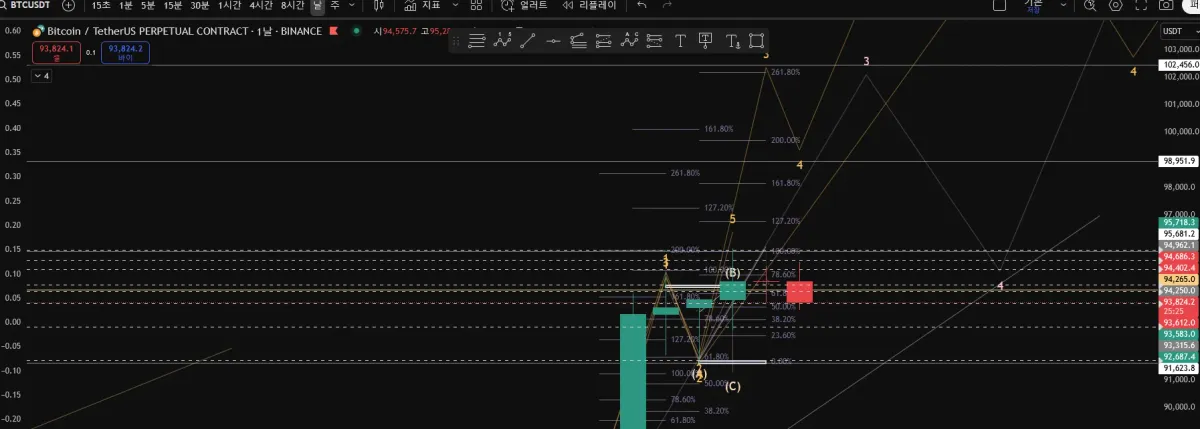 93500-96000구간이 상승을 위한 베이스 단계라고 생각하고 유투브에서 본 박스권 매매를 시도했다.