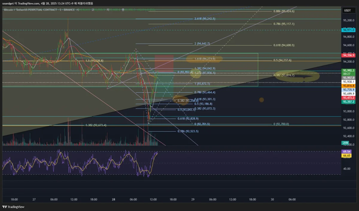 진입:93957/스탑:94356.9/익절:93357.2/손익비 1:1.5