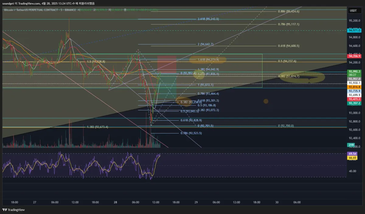 진입:93957/스탑:94356.9/익절:93357.2/손익비 1:1.5