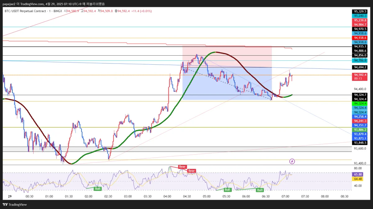 2)작은 추세의 전고점을 돌파했으나 RSI하락 다이버전스 발생