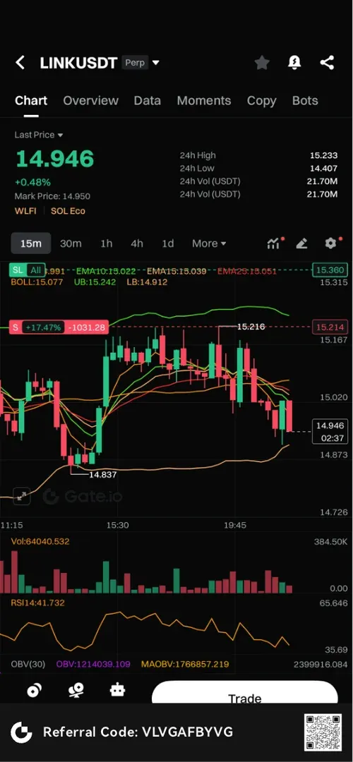 볼밴 상단>rsi 하락 다이버전스 >시간봉산 거래량 하락다이버전스 발생, 이전 고가 sl, 이전 저점 tp 이러한 이유로 진입 하였습니다.!