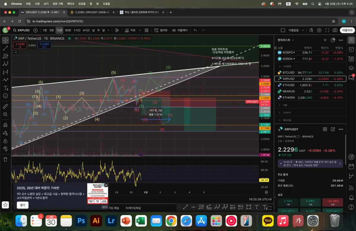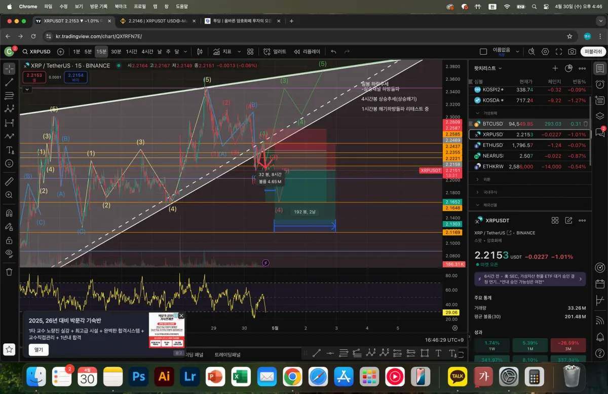 4시간봉 상승추세 -상승쐐기패턴