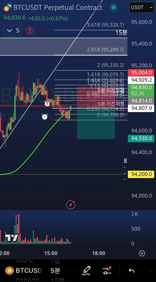 3) 피보나치 되돌림 0.5, 0.618 사이