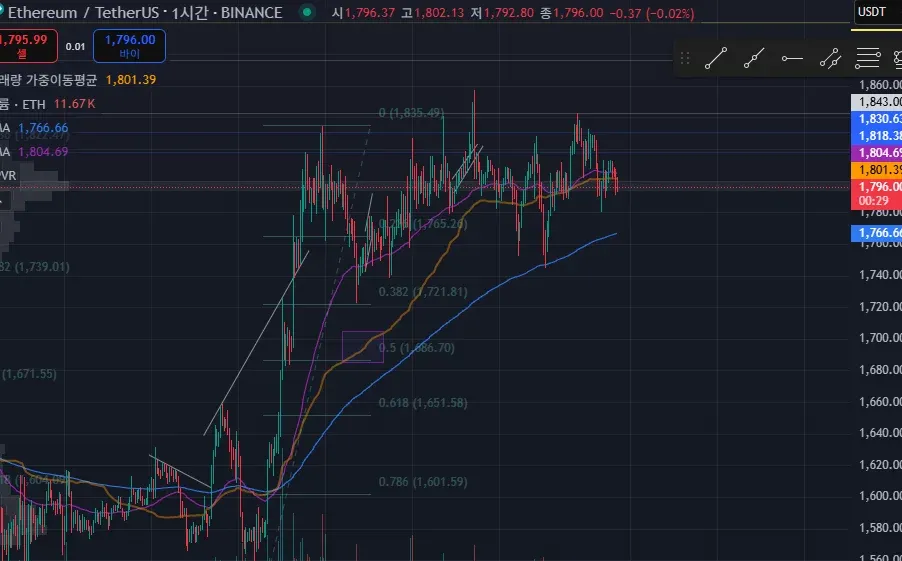 이더리움 피보나치 되돌림 382 조정에서 롱 진입후 수익 인증 입니다.