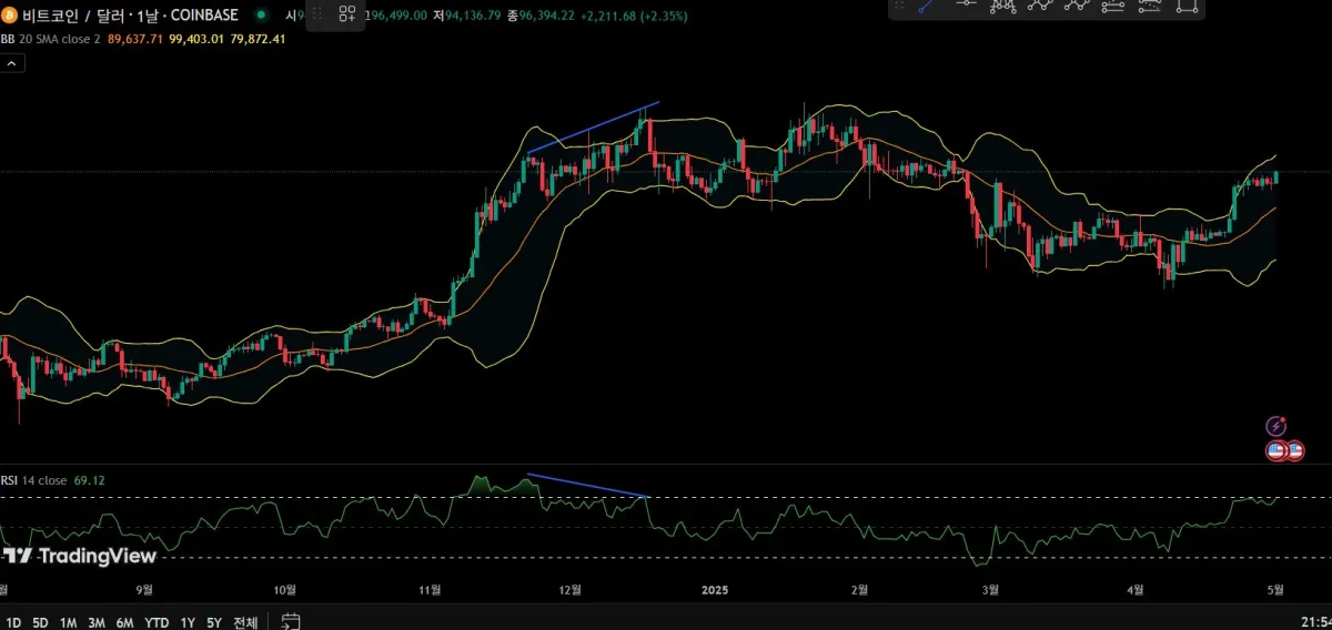 -가격과 RSI가 같이 가지 않을 것을 의미