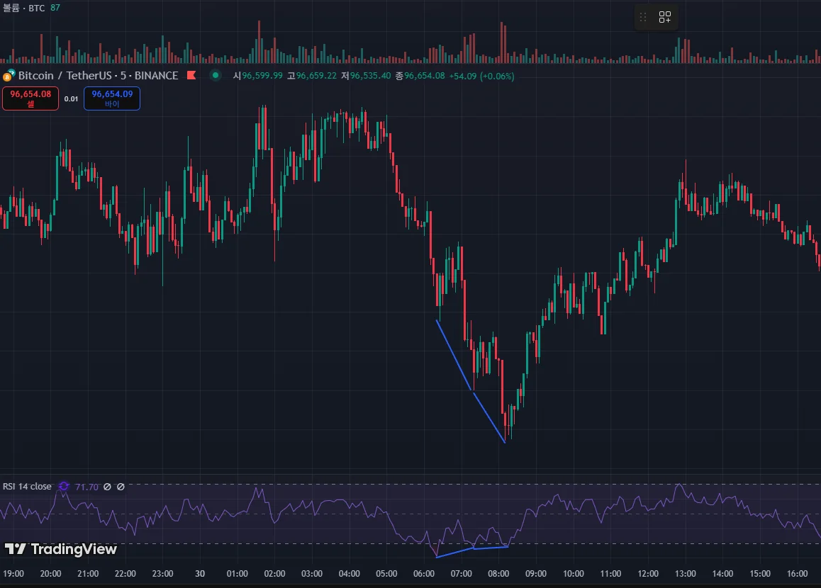 위 그림에서 파란색 선으로 표시한 부분이 다이버전스가 나온 게 아닌가 싶습니다.